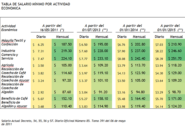 EL SALVADOR INCREMENTA SALARIO MÍNIMO |